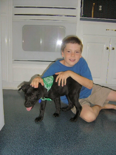 Here I am again, in the kitchen, with my dog Summer. Pretty sharp bandana, isn't it!