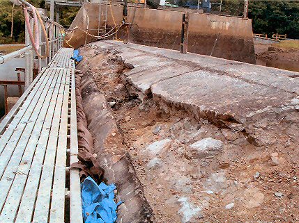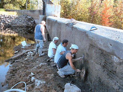 A view of the serious deterioration of the dam face that has to be repaired.