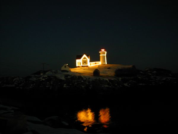 This is what the Christmas decorations looked like at Nubble Light on January 12, 2001.