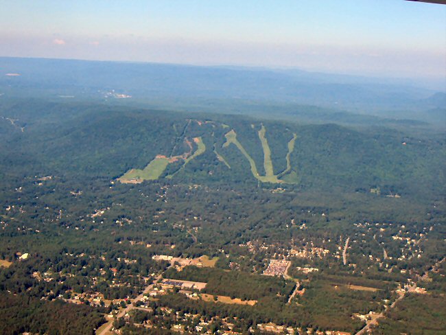 The ski slopes of West Mountain. Glens Falls is directly under our plane.