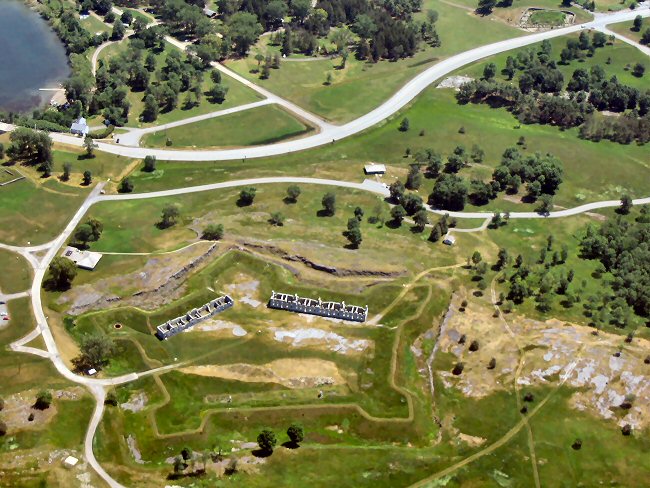 At the upper left the road leads to Fort Crown Point, part of the State Park.