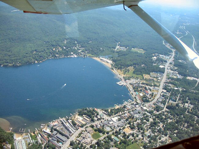 Lake George at its Southern end with the "Million Dollar Beach" at the center.