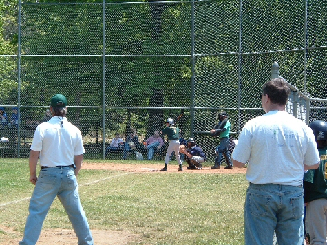 That's me at home plate batting. Dad is watching me in the right foreground.