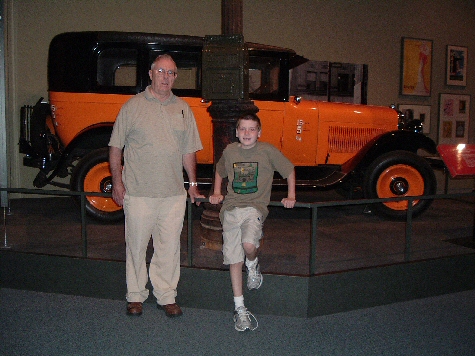 Grandpa and me in front of an antique car. The museum has a lot of keen exhibits and we had a lot of fun.