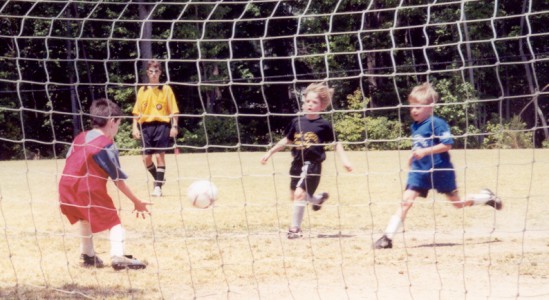 Stopping the ball in a sure goal shot is the goalee's job. You'll notice I have a bead on the ball and it won't pass me!! (It didn't.)