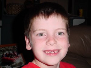 A November 2001 photo of me with my two front teeth missing! Nature is, of course, replacing the missing "baby" teeth with two brand-new permanent ones.