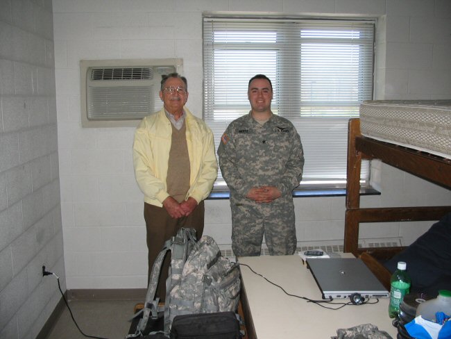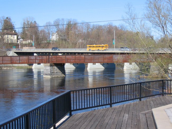 Waiting in Carthage for the arrival of Chris to guide us on the base at Fort Drum, near Watertown NY. In the foreground, crossing the Black River, is the railroad bridge that Grandpa Ron had worked on, restoring damaged piers many years ago.