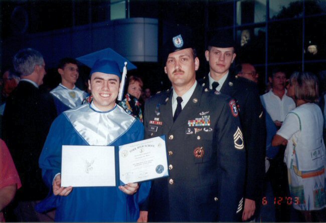 To start at the beginning, here is Chris graduating from York High School in June 2003 with his army recruiting officer attending the ceremony. Chris has been accepted into the U.S. Army to train for servicing helicopters after his graduation.