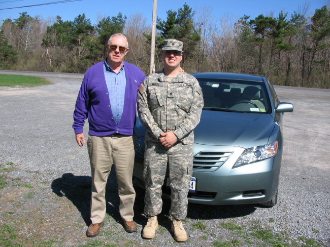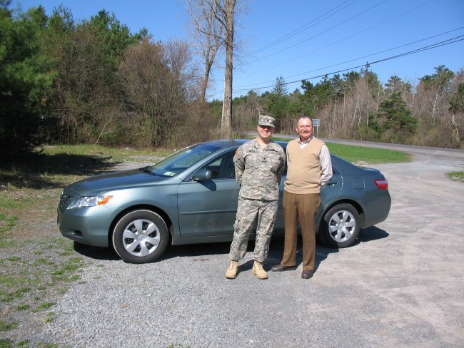 Ron, Chris and I in the parking area in front of the Unicorn Restaurant with my 2007 Toyota Camry LE.