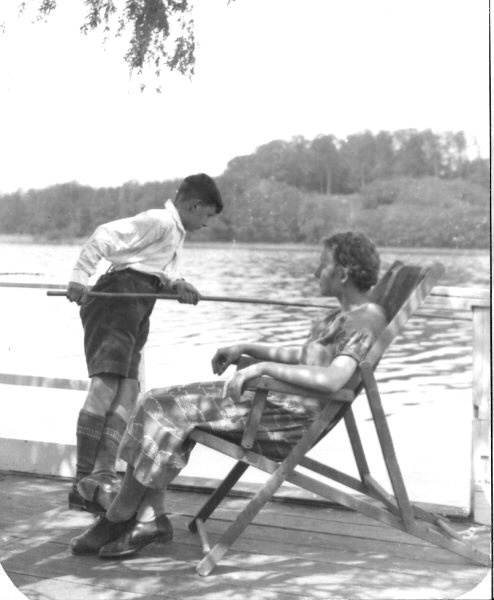 Mother's youngest brother Karl. On the left in his uniform prior to World War II. Uncle Karl returned from the war with a lingering fatal illness. On the right, in happier times, Karl and sister Emma enjoying a quiet afternoon fishing.