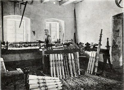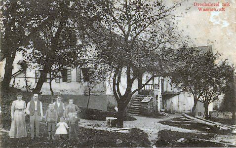 On the left is a photo of Ron's grandfather's (Alex's great-great-grandfather) water-powered wood-turning factory in Hollunder (Silesia). On the right is Franz Vogt in his Werkstatte (workshop). He was an expert in turning table and bed posts, stair spindles and posts; also making luxury furniture.
