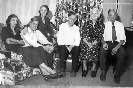 This is a family portrait of the Zamjohn family who had a long acquaintance with our family. On the left is Minnie Zamjohn whose arthritis is already showing on her fingers. Next is a young German exchange student whose name was Udo (who was staying with friends of Lydia in the Bronx and whose last name is lost to memory), Lydia (Mother's close friend), Mr. Zamjohn who was the proprietor of a shoe store on Albany Street. His brother, Herman, is not in the photo. The two elderly people on the right are Mr. Zamjohn's step-sister Gussie Lohman and her husband Otto Lohman who lived on nearby Emmet Street. The year of the photo is 1950.