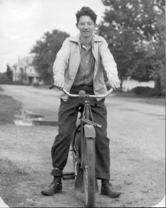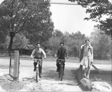 Myself on my trusty Wards Hawthorne bike. It took me everywhere (also to Draper High) until one of the boys got a car. Frank Rapant's grandfather gave him a 1926 Chevrolet that we all piled into to go to school. No school buses in those days, people, most kids walked. A rare shot of Dad on Shirl's bike. Notice the rural view of Mrs. VonStetina's fruit orchard across the street(and, in the left view, Mrs. Burke's beautiful house, now a McDonald's, opposite our street on Altamont Avenue).