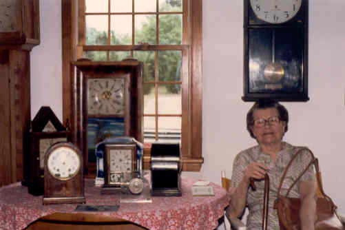 A different display of clocks in Mr. Richardson's shop. He also did repairs behind a long counter (not shown).