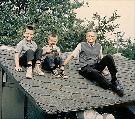 Russ and Randy enjoying the view from the shed roof on a balmy summer day. I think this picture (circa late 1960's) will bring back fond memories of "tea parties" and ham sandwiches with Pitzi Grandma (the original) and Grandpa Maltz.