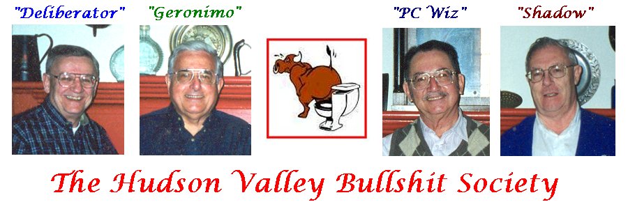 Plunging through scattered showers, the Terrific Trio from Upstate New York, ably chauffeured by PC Wiz, arrived at Roudigan's at 11:19 AM. Our resolute Southern Anchor, Geronimo, arrived on his usual tight schedule at 11:27 AM. HVBS members heartily greeted each other and entered the premises. Our Official Waitress, Jessica, was not in sight as a young, pretty Shawna informed us that Jessica would be present in "about 10 minutes". Shawna took our beverage orders - a Beck's dark for Shadow, a glass of cabernet for Deliberator and the usual Diet Pepsi for Geronimo. PC Wiz's Killian's Red did not arrive with the order - not available, so a draft Sam Adams duly appeared. Members toasted to good health.