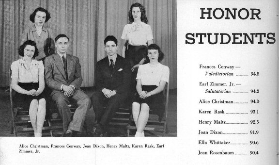 In the Fall of 1944 classes started in Draper High School on Draper Avenue. The school was 2.2 miles away and we had no school bus (outlying districts such as Guilderland and the Town of Princetown did) I rode my bicycle to school every day, Winter and Summer. Most of the students either walked or used the regular Schenectady Transportation buses (a six block walk for me to the corner of Curry Road and Altamont Avenue –in front of John Bigsbee School – for me). We were eligible for special tokens at 5 cents but you had to go to the office on State Street near Lafayette to purchase them. Graduation took place in June, 1947 in the Draper High auditorium. I had been a member of the orchestra for my first three years under Arthur Bennington and had been chosen as literary editor of the yearbook. I had worked part-time at Gershon’s Market next door to Bigsbee school.